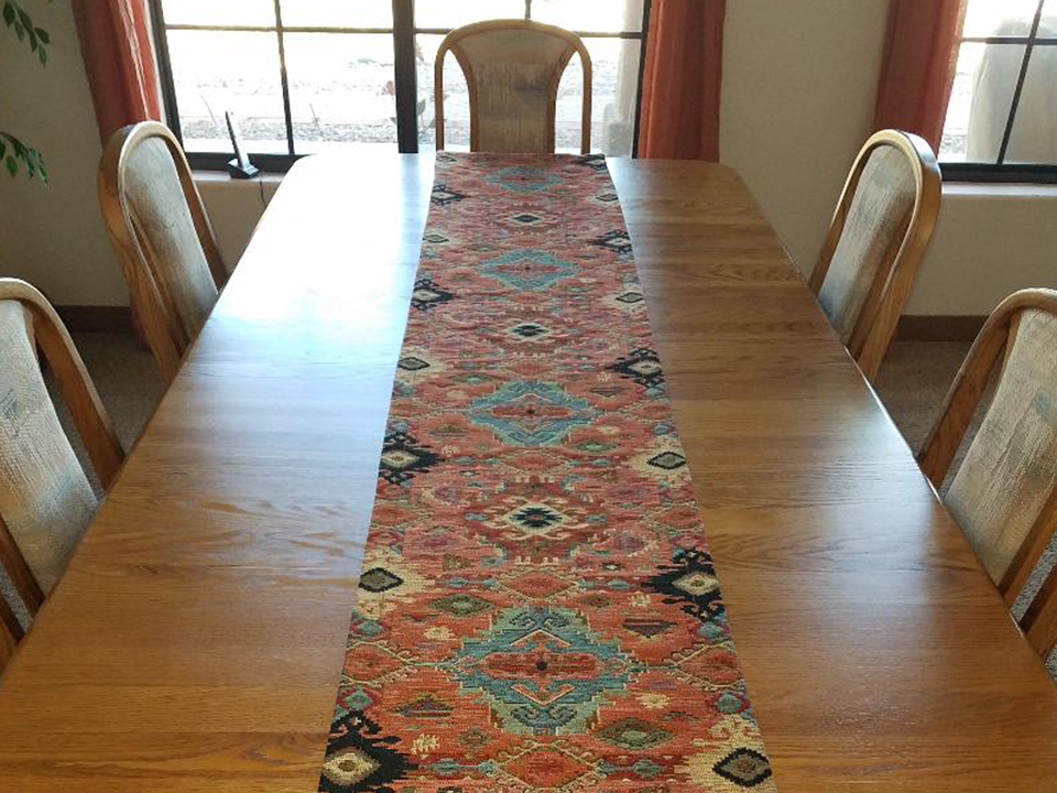 Recent design trends use bold southwestern patterns to heighten an otherwise plain space. Patterned valances go well with plain drapes, for example. Suede and leather chairs with brownish tones look great with patterned throws. In the dining room, southwestern fabric can be used as table runners and as upholstery for dining chairs. Patterns can also be used as decorative pieces like tapestries and living room blankets.